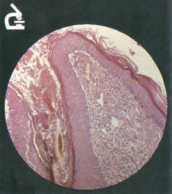 Zur Abklärung von Hautkrankheiten können kleine Hautstückchen dienen, die aus gestanzt werden (Hautbiopsie) und von einem Pathologen unter dem Mikroskop histologisch untersucht werden.