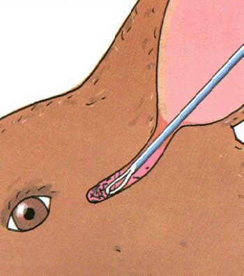 Ohrpfröpfe oder festes Sekret können mit einer Ohrschlinge entfernt werden. Eine Ruhigstellung ist meist erforderlich, um Verletzungen des Trommelfelles bei plötzlichen Abwehrbewegungen zu vermeiden.